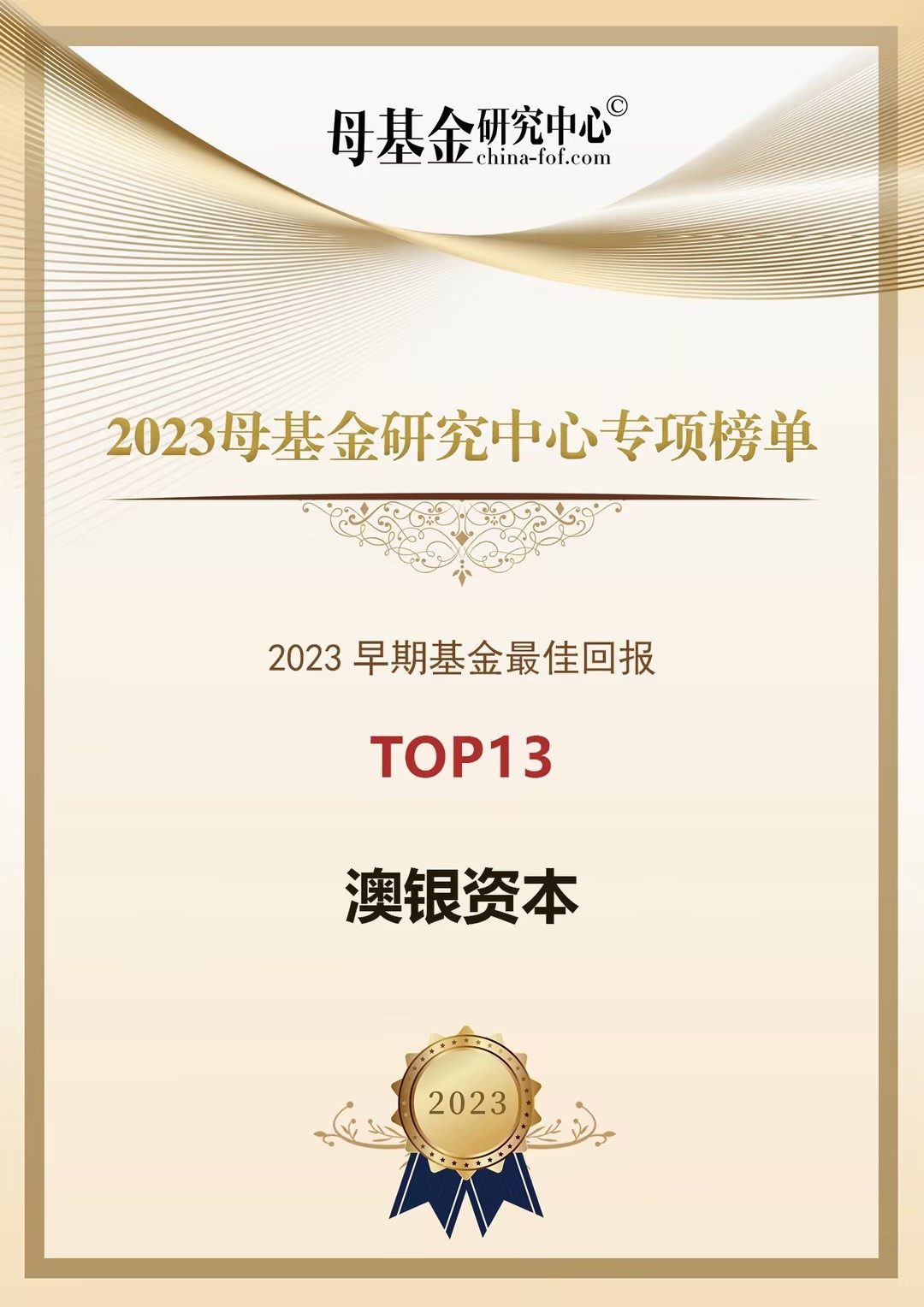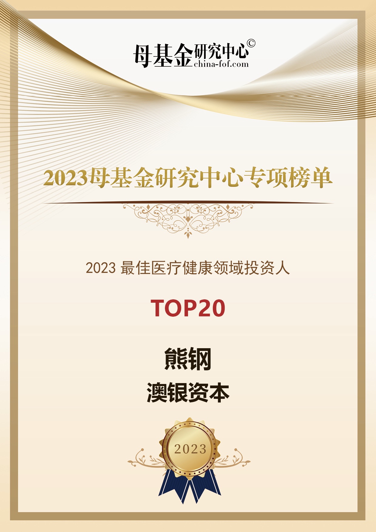 澳银资本凭借在医疗健康领域的持续深耕和优秀的投资业绩,荣膺2023母基金研究中心专项榜单“早期基金回报”投资机构榜、“医疗健康领域”投资机构榜、医疗健康领域投资人等三项子榜单!