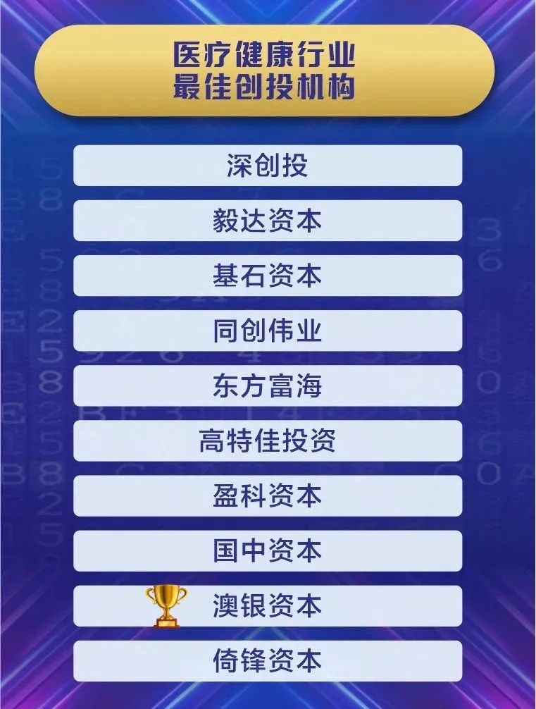 澳银资本由具有风险投资传统的家族信托于2003年在新西兰共同创立,透过美元母基金聚焦于欧美区域风险投资机会,2009年进入中国并展开人民币创投子基金管理业务,至今备案管理基金10支。澳银资本持续关注并重点投资于医学健康、先进制造、信息技术、能源材料等新兴技术领域中具有高成长潜力的初创企业,长期入选清科、投中等主流榜单,多次评获中国最佳创业投资机构Top50 ,中国最佳早期创业投资机构Top30,中国最佳回报早期创业投资机构Top10,中国最佳创业投资人Top50。经典投资案例包括:康泰生物(300601), 新产业生物(300832), 三利谱光电(002876), 维尔利(300190)等20余家上市公司及52toys,中晟全肽,揽月机电,空中云汇,星闪世图,拜尔洛克等一大批极具潜力的早期创新企业。
