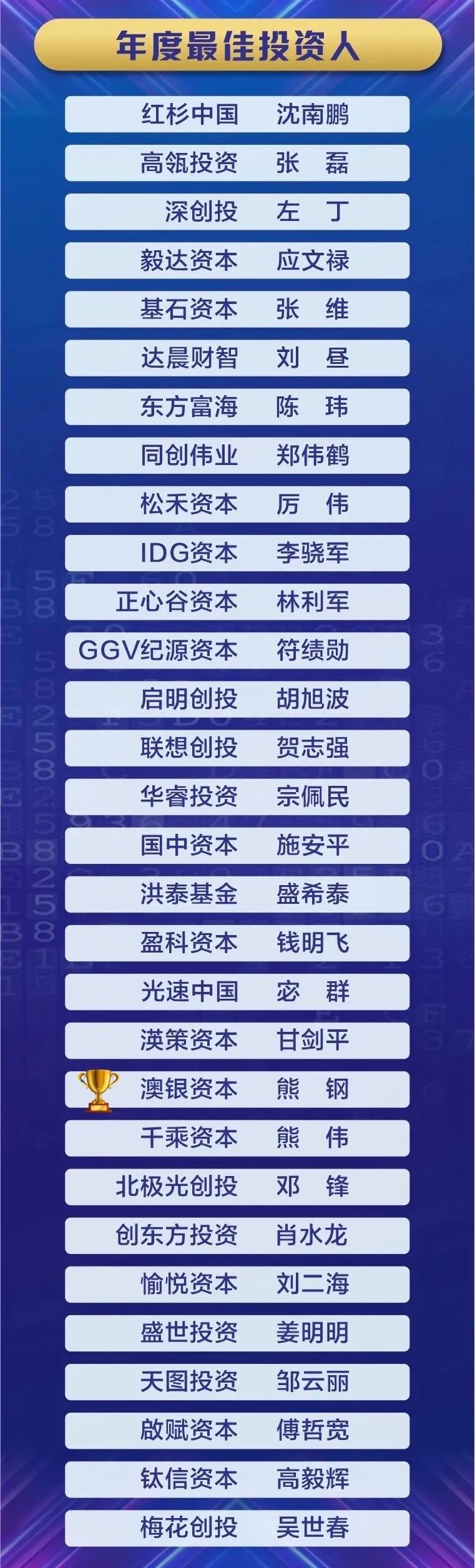 澳银资本创始合伙人兼董事长熊钢荣获: